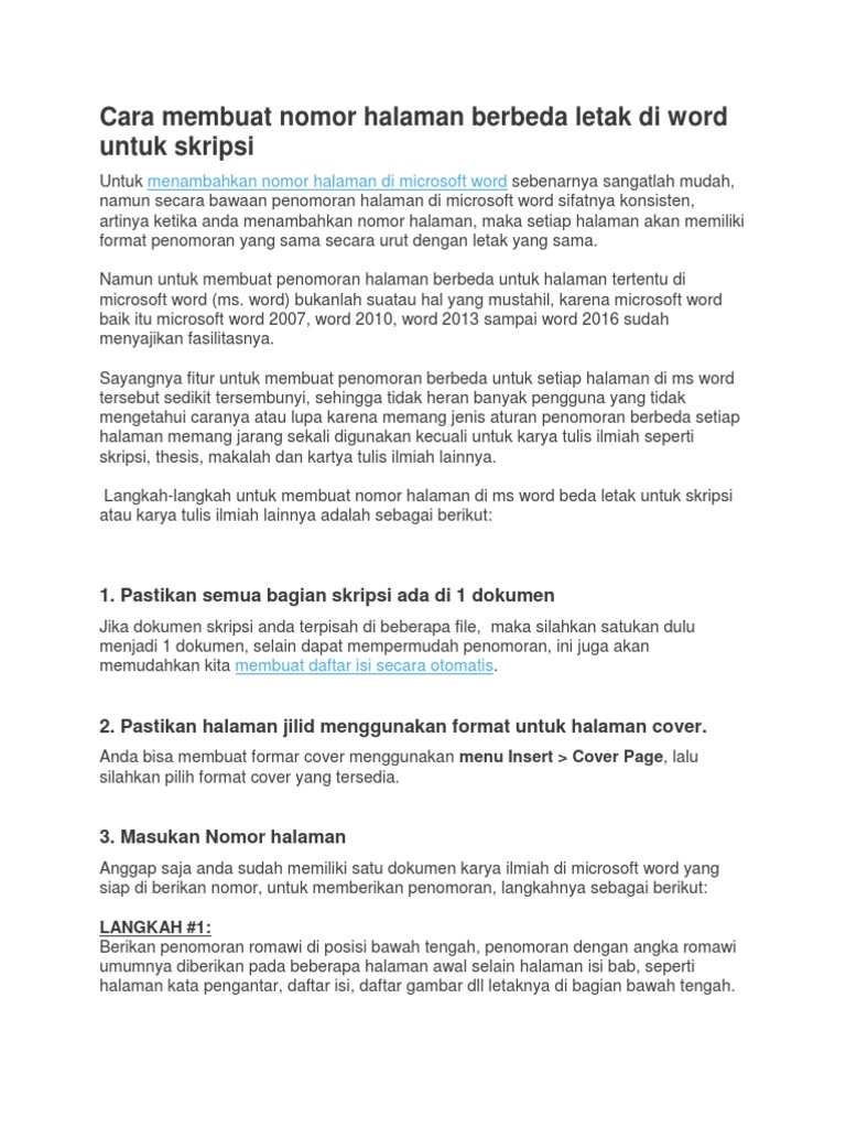 Cara Membuat Penomoran Halaman Yang Berbeda Di Microsoft Word 2010 from spiderman.trikinet.com Cara membuat halaman berbeda di word 2007. Check spelling or type a new query. We did not find results for: Maybe you would like to learn more about one of these?